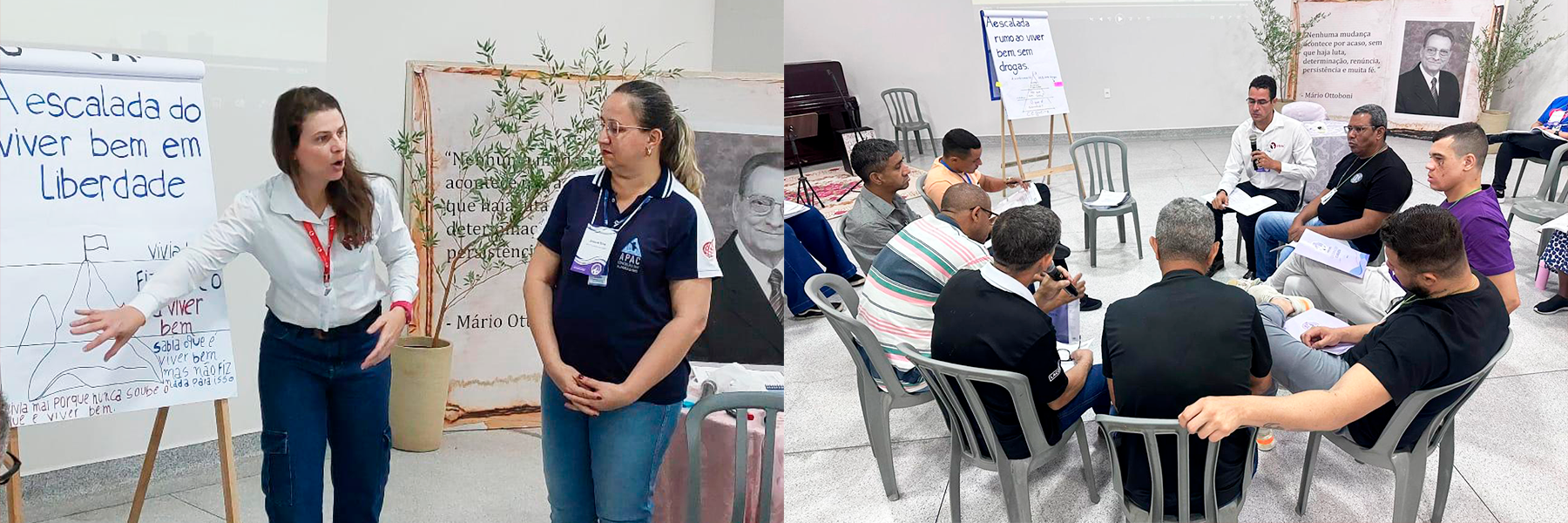 A programação contou com momentos de aprofundamento conceitual, vivência prática das sessões e plenárias para esclarecimentos, fortalecendo ainda mais o compromisso das APACs com o cuidado integral e a promoção da sobriedade.